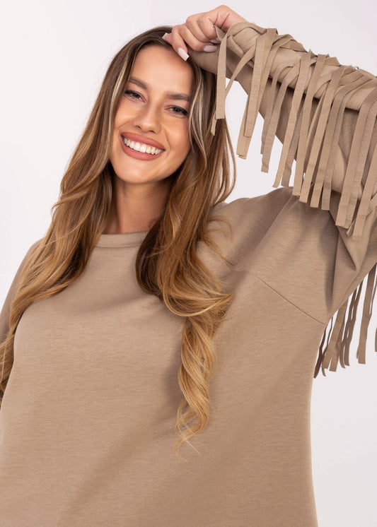 Tumši bēšs džemperis ar bārkstīm (One size/S-XL)