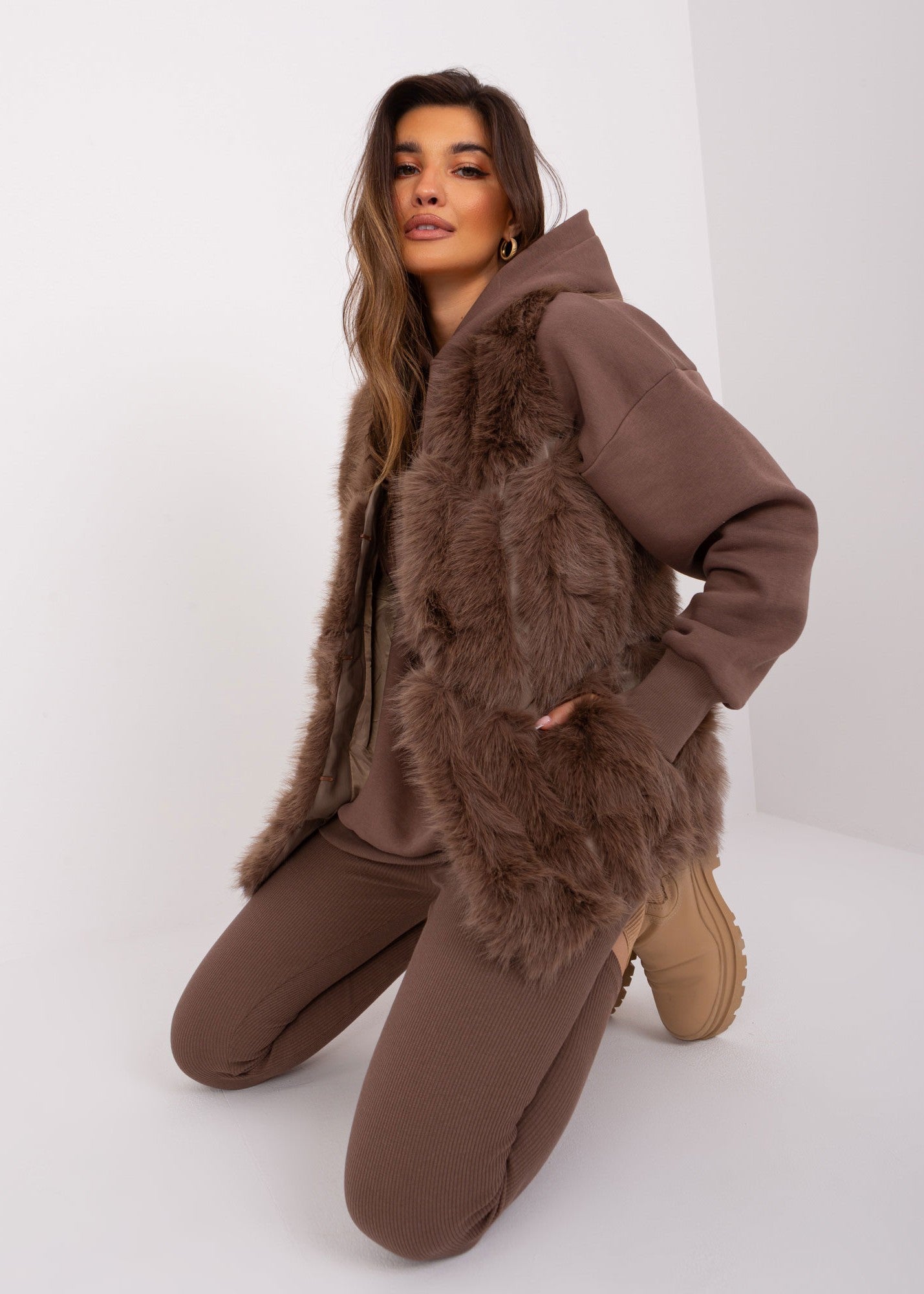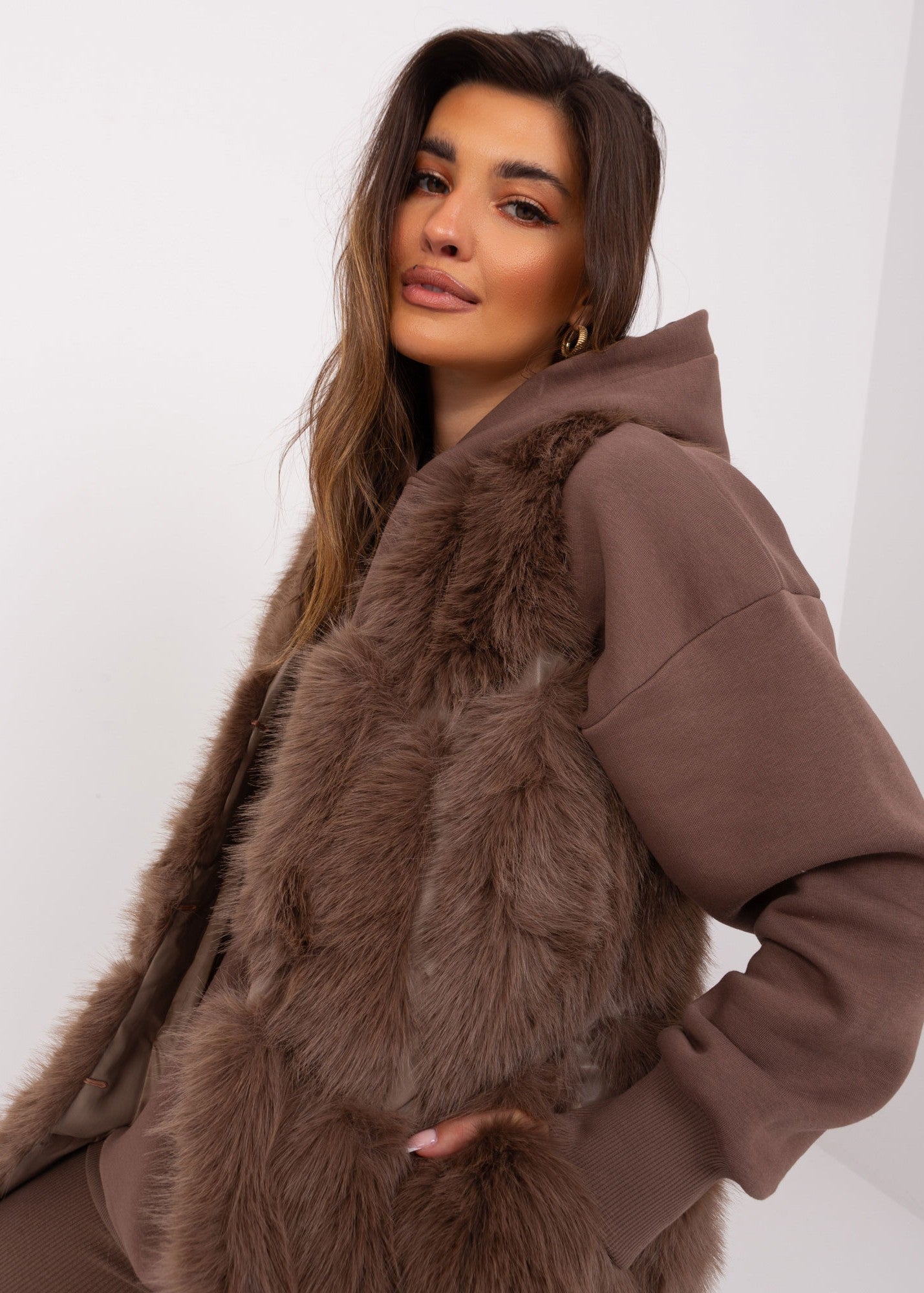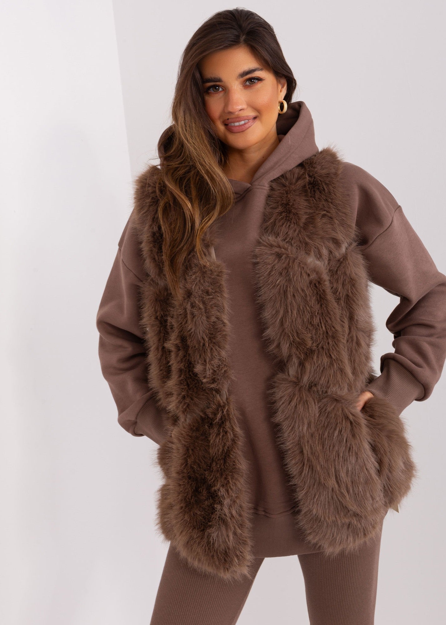 Brūna mākslīgās kažokādas veste (S/M; L/XL)